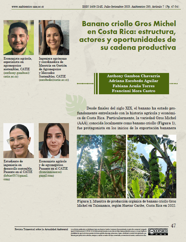 Banano criollo Gros Michel en Costa Rica: estructura, actores y oportunidades de su cadena productiva