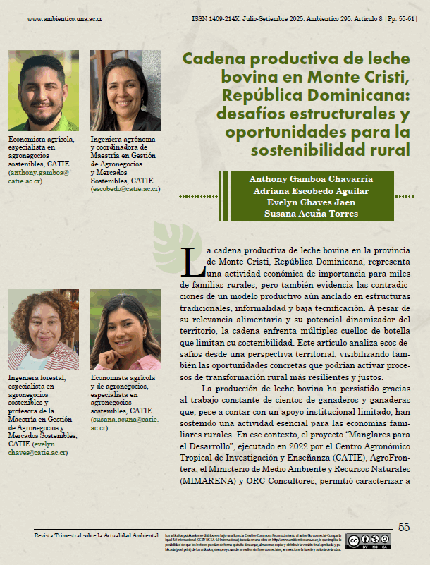 Cadena productiva de leche bovina en Monte Cristi, República Dominicana: desafíos estructurales y oportunidades para la sostenibilidad rural