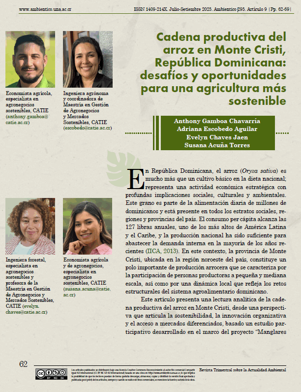 Cadena productiva del arroz en Monte Cristi, República Dominicana: desafíos y oportunidades para una agricultura más sostenible