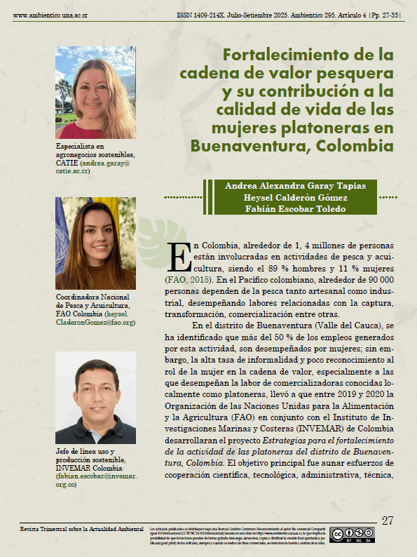 Fortalecimiento de la cadena de valor pesquera y su contribución a la calidad de vida de las mujeres platoneras en Buenaventura, Colombia