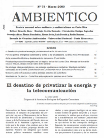 Varios Volver Metadatos Miniatura Compartir EdiciónMarzoAño2000Número78 Tabla de contenidos Artículo Autor Página El desatino de privatizar la energía y la telecomunicación Álvaro León Pág: 1 Por una política energética sustentable y contra la ley privatizadora Gabriel Rivas Pág: 10 Privatización de la producción eléctrica y desplazamiento campesino Pilar Ureña Pág: 11 Privatizar la producción energética es un negocio de los ricos contra Dios. Mensaje de Monseñor Ignacio Trejos, obispo de San Isidro de El General Ignacio Trejos Pág: 13 Se privilegia intereses petroleros y se posterga a poblaciones caribeñas. Manifiesto del taller convocado por el Comité Coordinador ante la Amenaza por la Explotación Petrolera Comité Organizador ante la Amenaza por la Explotación Petrolera Pág: 16 Municipalidad de Talamanca contra actividad petrolera en su territorio Municipalidad de Talamanca Pág: 18 Manifiesto de OILWATCH – Costa Rica ante exploración petrolera en el Caribe OILWATCH Costa Rica Pág: 18 Texto completo 78.pdf Descargar 78.pdf Continuar explorando Varios Varios Volver a la lista de elementos
