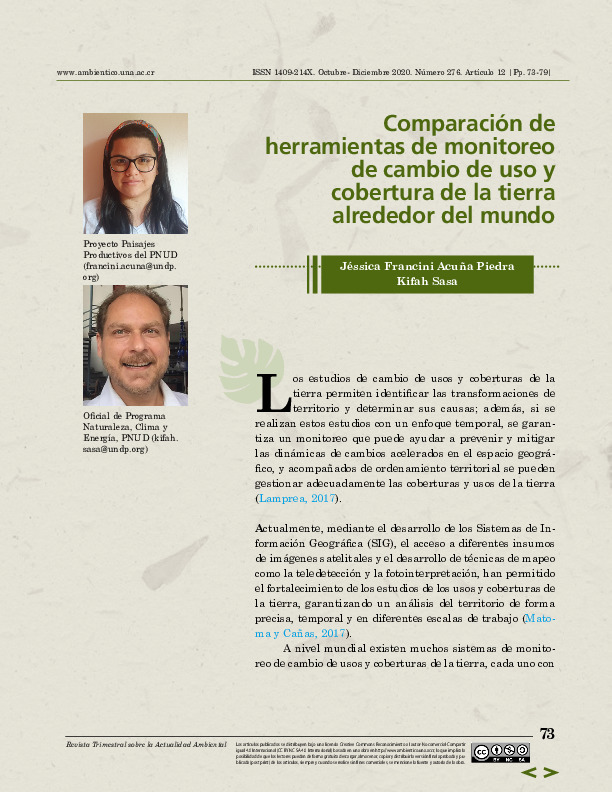 Comparación de herramientas de monitoreo de cambio de uso y cobertura de la tierra alrededor del mundo