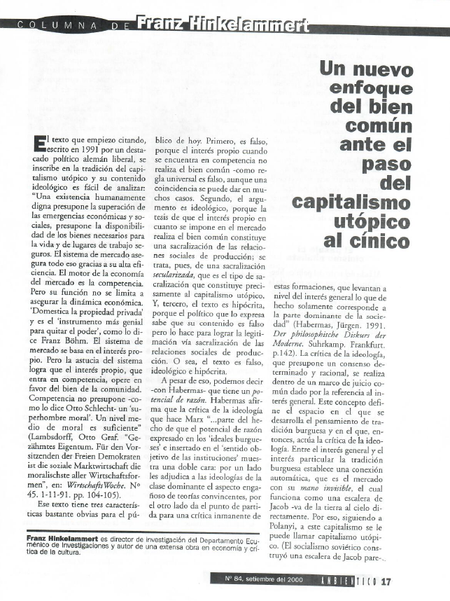 Un nuevo enfoque del bien común ante el paso del capitalismo utópico al cínico