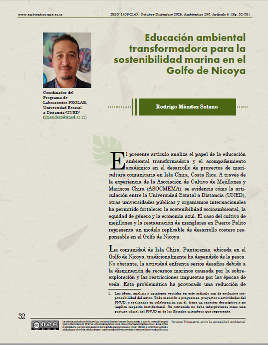 Educación ambiental transformadora para la sostenibilidad marina en el Golfo de Nicoya