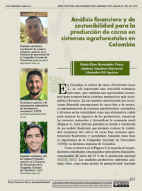 Análisis financiero y de sostenibilidad para la producción de cacao en sistemas agroforestales en Colombia Volver Metadatos Miniatura Compartir AutorAlejandro Gil Aguirre | Anthony Gamboa Chavarría | Pablo Elías Hernández PérezPalabras clavecacao | cadena de valor sostenibles | modelo financiero | Sistemas agroforestales | sistemas productivosAño2025EdiciónJulio-SetiembreFecha de publicación2025-10-03Número295Página107 Texto completo 5968-25 Ambientico_295_Articulo15 Descargar Continuar explorando Bosques que sostienen comunidades: La Asociación Noble Guadúa y el aprovechamiento sostenible de PFNM en la Comuna Olón, Ecuador Escalonamiento de productos con tintes naturales por mujeres de Santiago Atitlán, Sololá Guatemala Volver a la lista de elementos