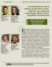 Fortalecimiento de la cadena productiva ovinocaprina: una apuesta rural desde Monte Cristi, República Dominicana Volver Metadatos Miniatura Compartir AutorAdriana Escobedo Aguilar | Anthony Gamboa Chavarría | Evelyn Chaves Jaen | Susana Acuña TorresPalabras claveAgricultura de subsistencia | agronegocios | ganadería bovina | ganadería caprinaAño2025EdiciónJulio-SetiembreFecha de publicación2025-10-03Número295Página70 Texto completo 5968-25 Ambientico_295_Articulo10 Descargar Continuar explorando Cadena productiva del arroz en Monte Cristi, República Dominicana: desafíos y oportunidades para una agricultura más sostenible Diversificar desde lo rural: Acceso a mercados diferenciados, sostenibilidad e innovación tecnológica en una asociación agrícola de Cipreses, Costa Rica Volver a la lista de elementos
