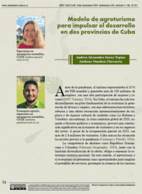 Modelo de agroturismo para impulsar el desarrollo en dos provincias de Cuba Volver Metadatos Miniatura Compartir AutorAndrea Alexandra Garay Tapias | Anthony Gamboa ChavarríaPalabras claveagroturismo | cadenas de valor sostenibles | comunidades rurales | economía rural | identidad culturalAño2025EdiciónJulio-SetiembreFecha de publicación2025-10-03Número295Página34 Texto completo 5968-25 Ambientico_295_Articulo05 Descargar Continuar explorando Fortalecimiento de la cadena de valor pesquera y su contribución a la calidad de vida de las mujeres platoneras en Buenaventura, Colombia Una mirada a la tradición y aporte socioeconómico del cerdo bellotero en Pinar del Río, Cuba Volver a la lista de elementos