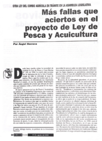 Inicio > Colecciones > Artículos > Otra ley del combo agrícola en tramite en la Asamblea Legislativa. Más falla que aciertos en el proyecto de Ley de Pesca y Acuicultura