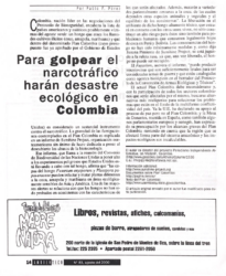 Para golpear el narcotráfico harán desastre ecológico en Colombia Volver Metadatos Miniatura Compartir AutorPablo PérezAño2000EdiciónAgostoFecha de publicación2000-08-01Número83Página14 Texto completo 83_14 Descargar Continuar explorando El letal impacto de la explotación petrolera en la Amazonia “Los grandes consensos sociales no deben más centrarse en la persona sino en la cadena de la vida” Volver a la lista de elementos